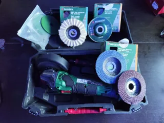 Amoladora angular a batería de la marca Parkside, modelo 20V. - Incluye empuñadura auxiliar. - Viene en su maletín original. Set de discos de laminas Set de discos devastadores Set de discos de pulido Set de discos de corte de vidrio Muy poco uso. Sin cargador ni batería