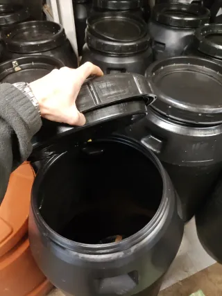Se venden barriles de PVC, ideales para almacenamiento o transporte 200 l - Material: PVC resistente. - Color: Negro y naranja.