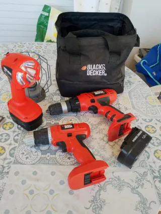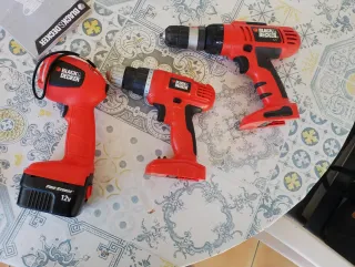 Taladro inalámbrico Black & Decker de 12V. - Modelo Fire Storm. - Incluye dos taladros. - Color rojo y negro.