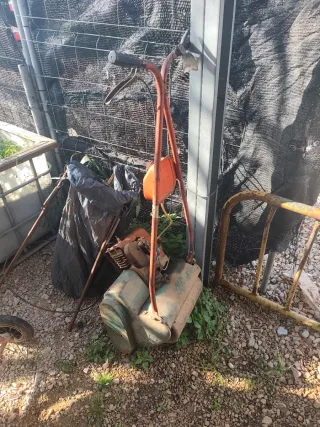 Se vende motocultor de color rojo. Ideal para trabajos en huertos o jardines. Motocultor lambreta en mui buen funcionamiento arranca ala primera 3 marchas alante 1 atras con sus fresas pa la tierra i solcadora - Depósito de combustible. - Ruedas. - Manillar.