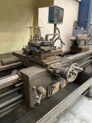 Distancia entre puntos 4000 mm Volteo sobre bancada ⌀ 870 mm Volteo sobre escote ⌀ 1100 mm Volteo sobre carro ⌀ 540 mm Caña ⌀ 85 mm RPM 16 - 1250 Nº velovidades cabezal 9 Potencia motor 25 cv Bomba de taladrina Si Plato de cuatro garras 600 ⌀ Si Luneta Si Torreta de cuatro posiciones Si Visualizador Si Peso 4.000 kg Medidas (ancho x largo x alto) 1168 x 5660 x 1460