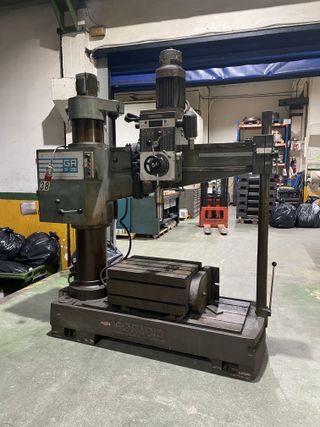 Diámetro máximo de taladrado ⌀ 50 mm Mesa 1345 x 750 Diámetro de la columna ⌀ 300 mm Longitud de la bandera 1200 mm Cono morse Nº 4 Potencia motor 4 cv Velocidades 12 Avances 6 Rpm cabezal 35 - 1460 rpm Dado/mesa 800 x 500 x 500 Peso 2300 Kg