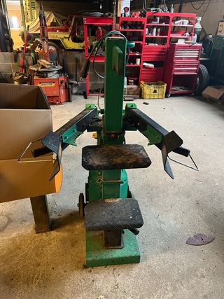 Rajadora de Leña vertical de 10 toneladas, la máquina tiene fuerza y raja bien, pero a la hora de subir de vacío a veces se queda trabada. La paras la vuelves a encender y funciona. es una máquina fuerte y pesada. Para recoger en mano o gestionar transporte.