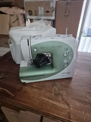 Se vende máquina de coser Bernette en color blanco y verde, junto con su bolsa de transporte. - Incluye bolsa de transporte. - Diseño moderno y compacto. -Marca Bernina.