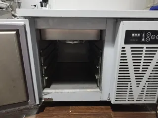 Equipo profesional para la rápida refrigeración o congelación de alimentos. Tiene garantia hasta mayo. Debido a su peso no se puede enviar. - Construcción en acero inoxidable. - Puerta abatible. - Panel de control digital. - Capacidad para tres bandejas Gastronorm