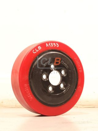 Rueda Tracción BT 250 x 75 - 80 5B 16/29- Vulcollan Ref: A-1393 Fotografías realizadas en nuestras instalaciones y pertenecen a la unidad en stock ofertada. Disponemos de más de 200 máquinas entre carretillas elevadoras, apiladores, transpaletas, retráctiles, etc. Solo primeras marcas como Linde, STILL, Jungheinrich y Toyota / BT. Puede realizar la compra o consultar todo el stock, siempre actualizado, en nuestra propia página web. CLB Forklifts Realizamos envíos a toda España