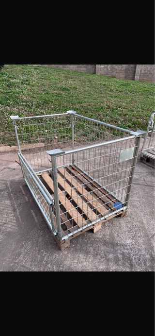 Disponemos jaulas metalicas para palet de 80 x 1,20. 9 apilables con apertura lateral. 5 NO apilables con apertura frontal se vende el pack completo.