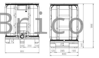 DEPOSITO PLASTICO 600 LITROS CON PALET DE PLASTICO RECTANGULAR Depósito o contenedor de 600 litros fabricado en polietileno de alta densidad y alto peso molecular (PEAD-APM), con estabilizante UV. Jaula de perfil cuadrado de acero galvanizado construida por electrosoldadura automática. Válvula de 2” fabricada en polietileno de alta densidad (PEAD) por inyección con tapón autoprecintable y provista de codo de vaciado. Tapa roscada de 150mm. de diámetro precintable. Palet de plástico de 4 entradas apilable y encajable. Apilable hasta 3 alturas. Aconsejamos no transportar productos de densidad superior a 1,5Kg/dm3. Homologado para s...