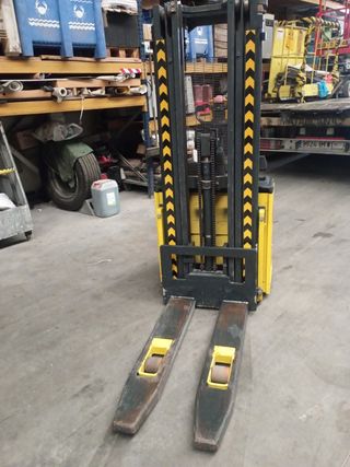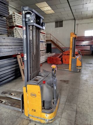 Apilador eléctrico de ocasión en buen estado. Levanta mas de 3mt y alza 1000kg Baterias en perfecto estado - Funcionamiento electrico con cargador - Diseño robusto y resistente. - Color amarillo.