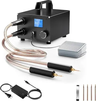 Soldador por Puntos Soldador de Puntos Portátil con Condensador 3000F, 250 Niveles Ajustables, Pantalla LCD de 1,8, Soldador por Puntos para Tiras de Níquel de 0,1 a 0,3 mm - Incluye fuente de alimentación. - Dos puntas de soldadura. - Un clip de sujeción.
