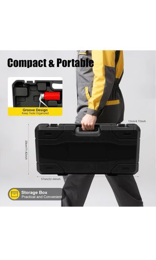 Se vende roscadora portátil en su maletín. - Incluye el cuerpo de la roscadora. - Juego de 6 dados de diferentes tamaños. - Mango auxiliar y llave.