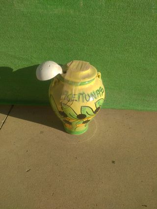 Orza de cerámica para aceitunas, con tapa y cazo