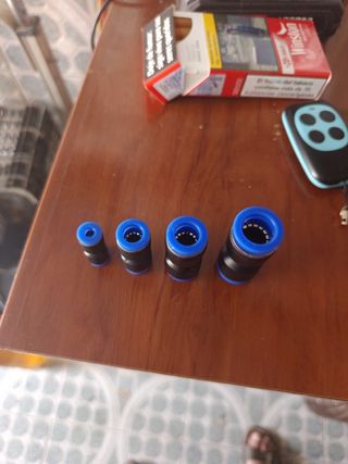 Lote de racores neumáticos de conexión rápida. Son ideales para sistemas de aire comprimido. - Fabricados en plástico y metal. - Color azul y negro.
