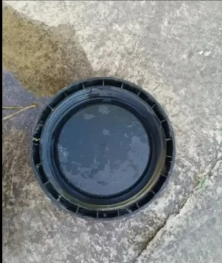 Bidón de plástico de color azul con tapa negra. - Material: Plástico resistente. - Color: Azul. - Tapa: Negra.