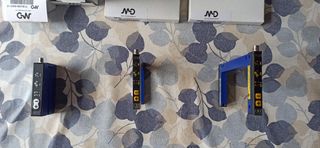 Lote de fotocélulas y sensores ópticos de la marca DINEL. Incluye varios modelos y accesorios. - Sensores ópticos de diferentes tipos. - Carcasa de plástico azul. 10 € unidad. Lote entero 50