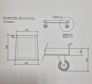3 carros de 52x53x15 para recoger sillas de terraza en bares o cafeterías.