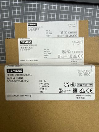 Lote de módulos Siemens S7-1500. - Unidad Central de Procesamiento (CPU) 1511F-1PN. - Módulo de Entrada Digital (DI) DI 16x24VDC. - Módulo de Salida Digital (DQ) DQ 8x24VDC/2A/PPM. Nuevos a estrenar
