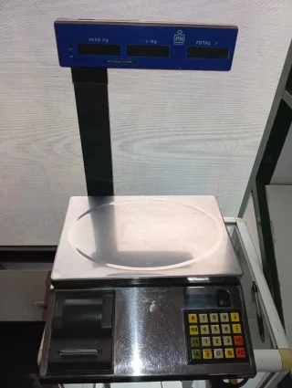 Balanza digital de la marca PH, ideal para comercios. - Pantalla digital para peso, precio y total. - Teclado numérico para introducir precios. - Impresora de tickets integrada.