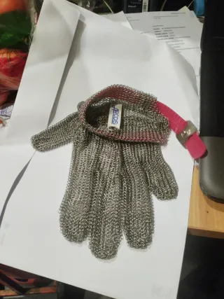 Guante de malla metálica de la marca Arcos, diseñado para carnicería. - Fabricado en malla metálica - Correa ajustable con hebilla.acero inoxidable.