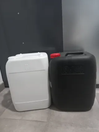 ¡Aprovecha a oportunidad! Se vende lote de varias garrafas de plástico, blancas o negras, de 20 litros cada una. - Material: Plástico resistente. Han contenido productos de limpieza. Si desarrollas tu creatividad puedes conseguir muchos usos, un puede ser, crear un práctico ponedero para las gallinas, por ejemplo.