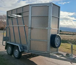 Remolque ganadero en excelente estado, prácticamente a estrenar. - Construcción robusta en metal. - Diseño con rejillas para ventilación. - Rueda de repuesto incluida. - Doble eje para mayor estabilidad. - 750kgs, no lleva matrícula, ni gastos ITV, ni seguro. Precio poco negociable por su perfecto estado. NO MAREANTES.