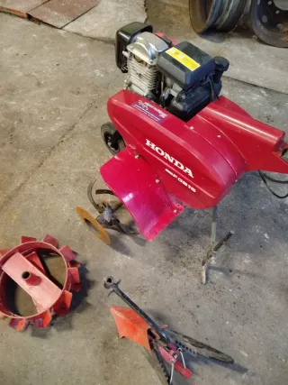 Motocultor Honda FGB 15 en color rojo. - Motor Honda. - Ruedas incluidas. - Incluye accesorios para labranza.