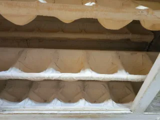 Cámara de prefermentación de la marca Kanterpan. - Dimensiones de 1 metro de ancho y 2 metros y medio de alto. - Modelo antiguo pero de funcionamiento impecable. - Capacidad para 300 bolas de masa. - Estructura de tela beige totalmente nueva. - Diseño con pliegues. - Múltiples niveles.