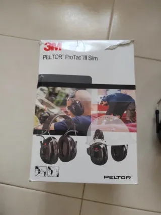 Cascos protectores de la marca PELTOR, modelo Protac III Slim. - Diseño en color negro. - Banda de sujeción ajustable.