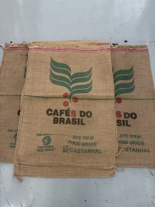 Se venden 5 sacos de café de Brasil, ideales para decoración o coleccionismo. - Material: Yute. - Diseño: Cafés do Brasil con logo de planta de café. - Medidas: aproximadamente 1 metro de largo y 70cm ancho MAS SACOS EN MI PERFIL