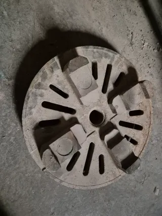 Plato de torno de 440 mm de diámetro. - Fabricado en metal resistente. - Diseño con ranuras y orificios para sujeción.