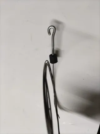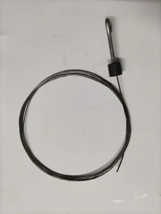 Cable de acelerador para SEAT 850. Pieza metálica con gancho y tope de goma. Usado - Material: Metal y goma. - Tipo: Cable de acelerador.