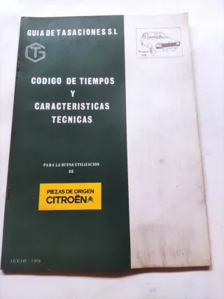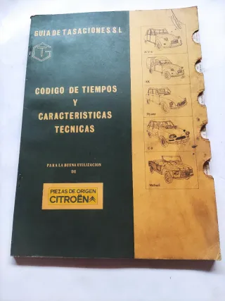 Manual técnico de Citroën. - Guía de tasaciones, códigos de tiempos y características técnicas.pares de apriete tornillos sistema eléctrico - Incluye información para la buena utilización de piezas de origen. - Ilustraciones de modelos como 2CV-6, AK, Dyane, C-8 y Mehari.