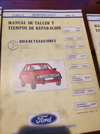 Conjunto de manuales de taller y tiempos de reparación para vehículos Ford. Incluye guías de tasaciones y esquemas eléctricos. - Manual de Taller y Tiempos de Reparación. - Guía de Tasaciones - Esquemas Eléctricos