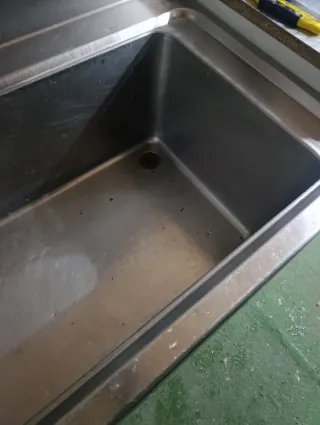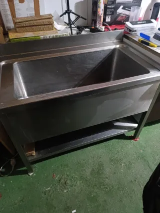 Fregadero de acero inoxidable de gran tamaño, ideal para entornos profesionales. - Construcción robusta en acero inoxidable. - Diseño funcional con amplio espacio. - Incorpora una balda inferior para almacenamiento adicional. 1,20x0,7 por 0,80 alto