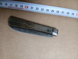 Navaja antigua con mango de madera. Presenta un diseño clásico y robusto. - Hoja de metal. - Mango de madera desgastada.
