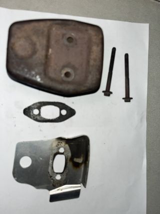 Escape (silenciador) original desmontado de motosierra McCulloch MAC 335 Vortex. Se entrega completo, tal como se ve en las fotos: Cuerpo del escape Deflector / tapa Junta Tornillería Estado: usado, con óxido superficial exterior propio del uso y del tiempo. Interior sin comprobar a fondo, no presenta roturas ni grietas visibles. Ideal para sustitución o restauración. 🔧 Compatibilidad Válido para: McCulloch MAC 335 Vortex 👉 Puede ser compatible con otros modelos McCulloch de la misma cilindrada y generación, pero recomiendo comparar con fotos y referencias antes de comprar. ℹ️ Notas importantes Pieza procedente de desp