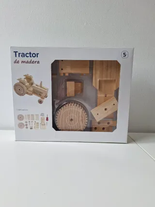 Kit de tractor de madera para montar. Ideal para desarrollar la motricidad fina y la creatividad. - Piezas de madera natural. - Incluye herramientas para el montaje. - Uso necesario de un destornillador para su montaje. Destornillador no incluido - Diseño detallado del tractor.