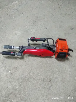 Vibradora Pimar en color rojo y negro. - Mango ergonómico. - Arnés acolchado para mayor comodidad. - Motor de gasolina. -Lleva tiempo sin usarse.