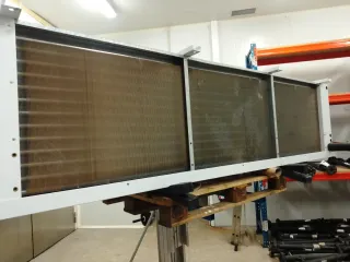 Evaporador industrial con ventiladores. - Marca: Ersaire - Tres ventiladores de gran tamaño. - Estructura blanca.