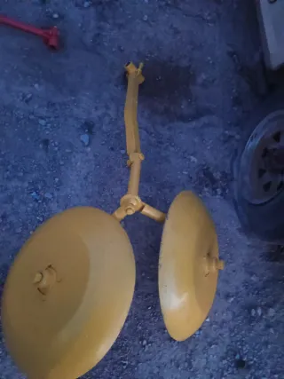 Herramienta agrícola de color amarillo. - Estructura metálica. - Dos discos. - Adaptable a tractor.