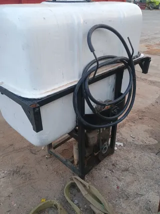 Cuba para pulverizador suspendido, con capacidad para líquidos.semi nuevo sa gastado mui poco - Depósito de plástico blanco y naranja. - Estructura metálica de soporte. - Manguera azul protectora. - Conexión para manguera.