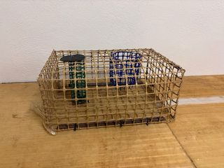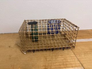 Nasas de pesca de material resistente. - Estructura de malla. - Incluye dos compartimentos interiores, uno verde y otro azul. - Tapa negra superior. - para el pulpo y la langosta