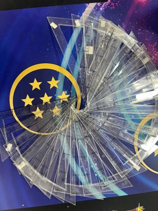 Conjunto de 26 cartabones transparentes, perfectos para tus proyectos de dibujo técnico o escolar. - Material: Plástico transparente. - Medidas: Varios tamaños incluidos en el lote. Lote-26C