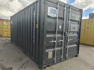 Contenedor marítimo de 20 pies en color gris. Ideal para almacenamiento o transporte. - Medidas estándar de 20 pies. - Color gris exterior.
