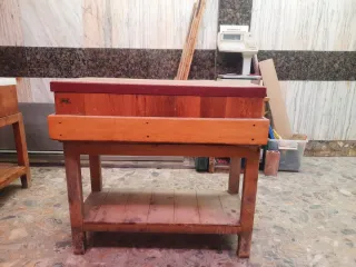 Picadero de carnicería de madera, ideal para profesionales. - Estructura robusta de madera. - Superficie de corte amplia. - Diseño clásico de carnicería. 48*98*98cm