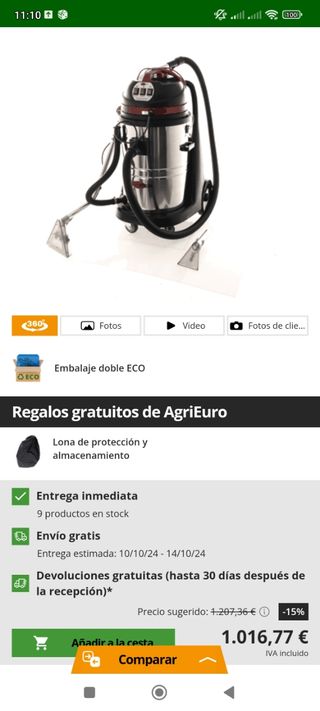 Aspiradora, limpiadora, está nueva, solo se uso para probarla y se ve a simple vista, con todos sus accesorios, ideal para alfombras, moquetas, etc. Aspira liquidos y solidos. Cuesta nueva 1060 euros, la colgué en 450 y la he bajado, no le quito nada, no se puede enviar a través de wallapop por el peso, si alguien de fuera la quiere, tiene que preparar el envío a través de otra empresa. ( Por correo express, cuesta 50 euros aprox, a la otra punta de España) No mareantes, las aspiradora es nueva a estrenar.