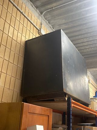 Montacargas industrial de dos plantas con capacidad para 500kg. Estructura metálica resistente y segura altura segunda planta 4 mts 380 vol hidráulico cuadro de maniobra completo no es el de la foto está desmontado se desmontó funcionando perfectamente - Altura de dos plantas. - Capacidad de carga: 600 kg. - Ideal para almacenes o talleres