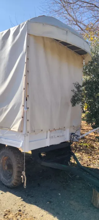 Remolque con lona, ideal para romerías o eventos. - Lona de color beige. - Estructura blanca. Tiene luces en el interior las 4 gomas son nuevas tiene papeles es un remolque agrícola tiene altillos mesa y asientos tapizados y se a pintado recientemente precio algo negociable
