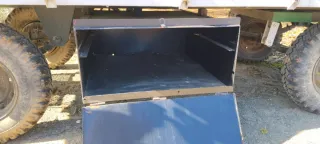 Comedero para aves de corral, ideal para gallinas, patos y pavos. Es un comedero metálico, con estructura de soporte. Parece un poco desgastado por el uso, pero se encuentra en buen estado general. - Comedero metálico resistente. - Estructura de soporte estable. - Diseño adecuado para diferentes tipos de aves.