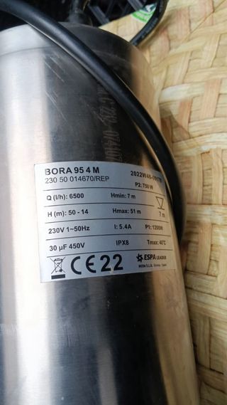 Bomba de agua ESPA Prisma 25-4M, ideal para diversas aplicaciones. Bomba de agua ESPA modelo Prisma 25-4M. Usada pero funcionando a la perfección. Nueva cuesta en torno a 890 euros. Por no usar más. - Cuerpo de la bomba de acero inoxidable. - Motor eléctrico con carcasa de aluminio. - Conexiones roscadas para fácil instalación.